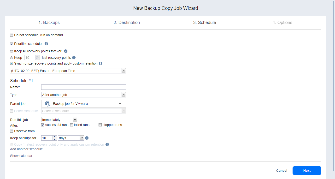 Keep backups for: Specify how many days, months, or years NAKIVO Backup & Replication should retain the backups.