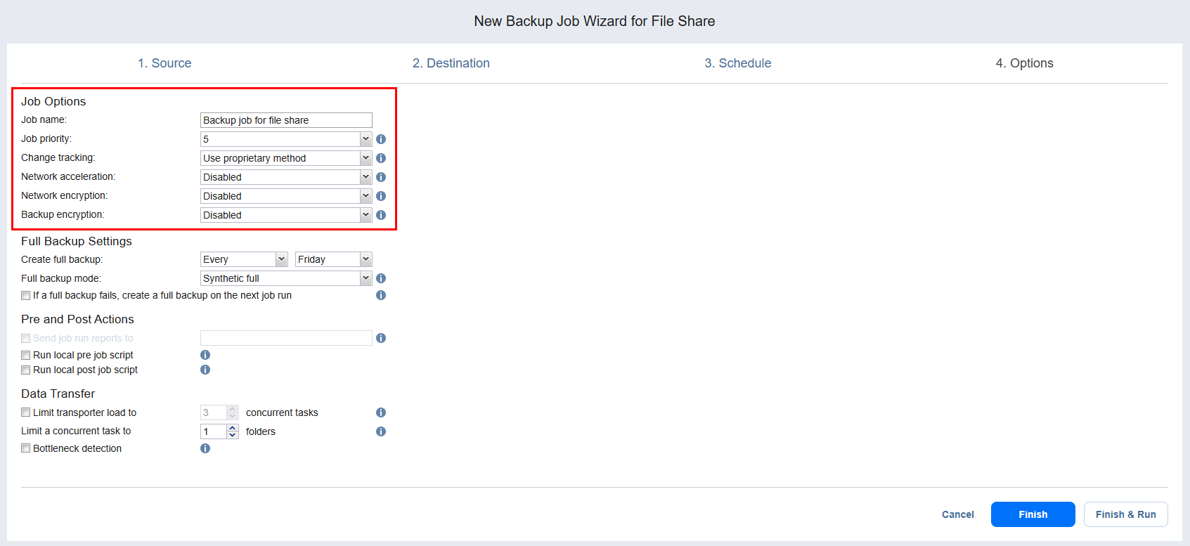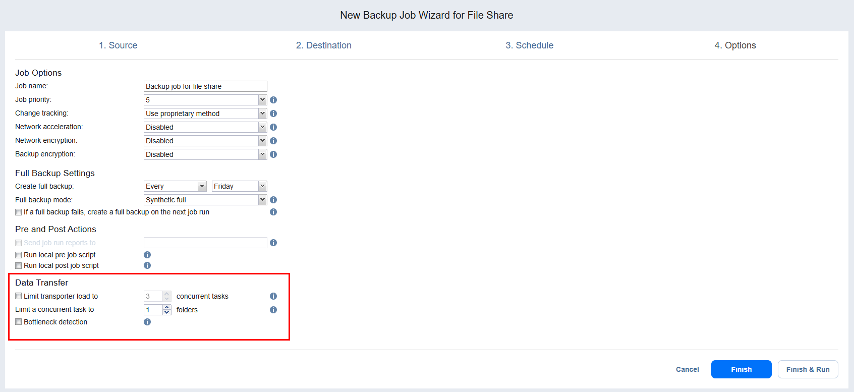 On the Options page, set the job options and configure transporter load for the backup job. Proceed as described in these sections: