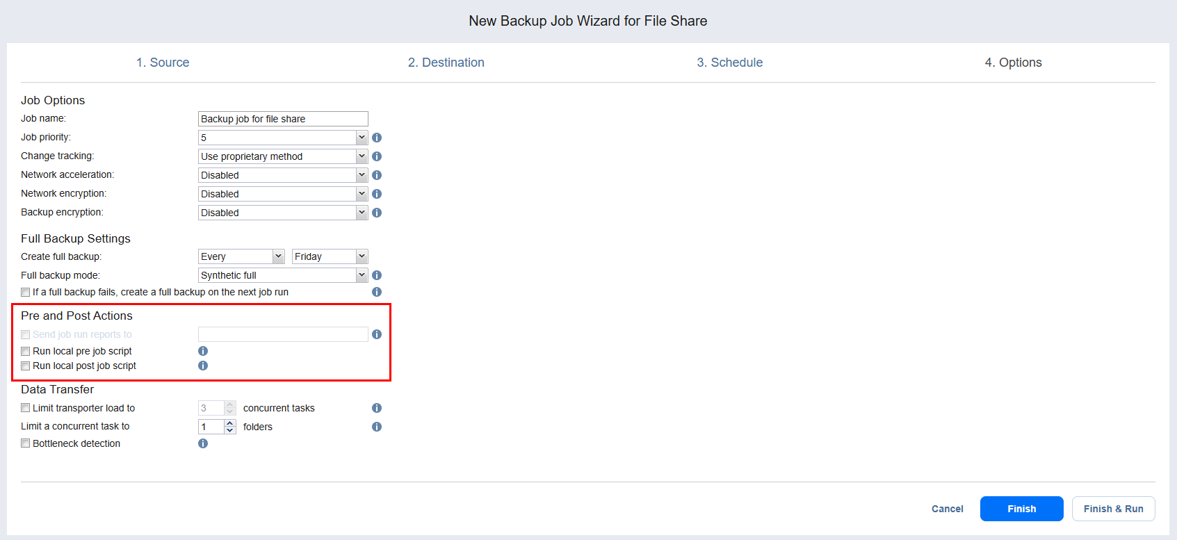 NAKIVO Backup & Replication allows you to set up certain actions before a backup copy job begins and after it has completed. You can choose to send job run reports to the email provided and run local pre and post job scripts.