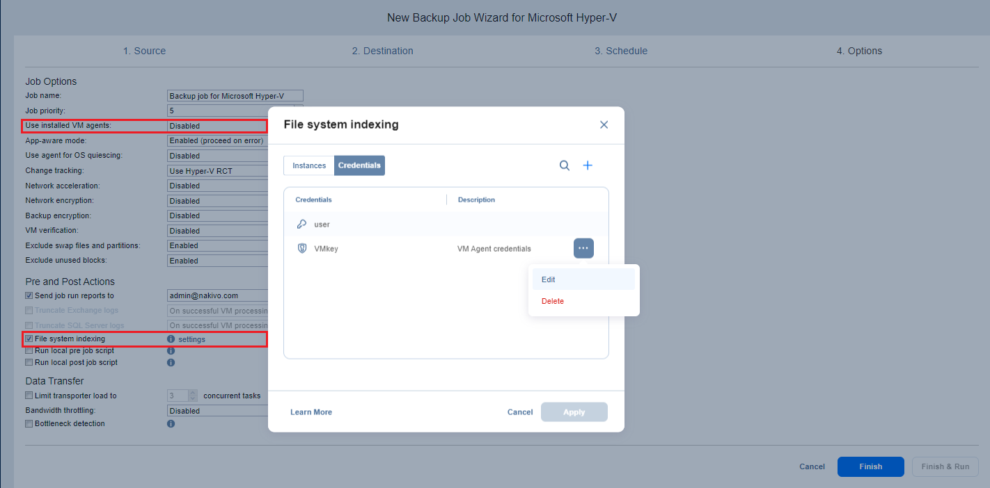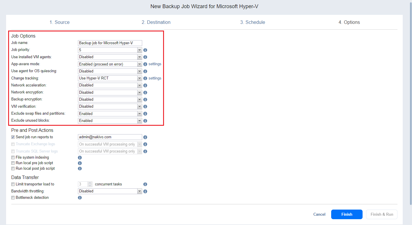 Backup Job Wizard for Hyper-V: Options