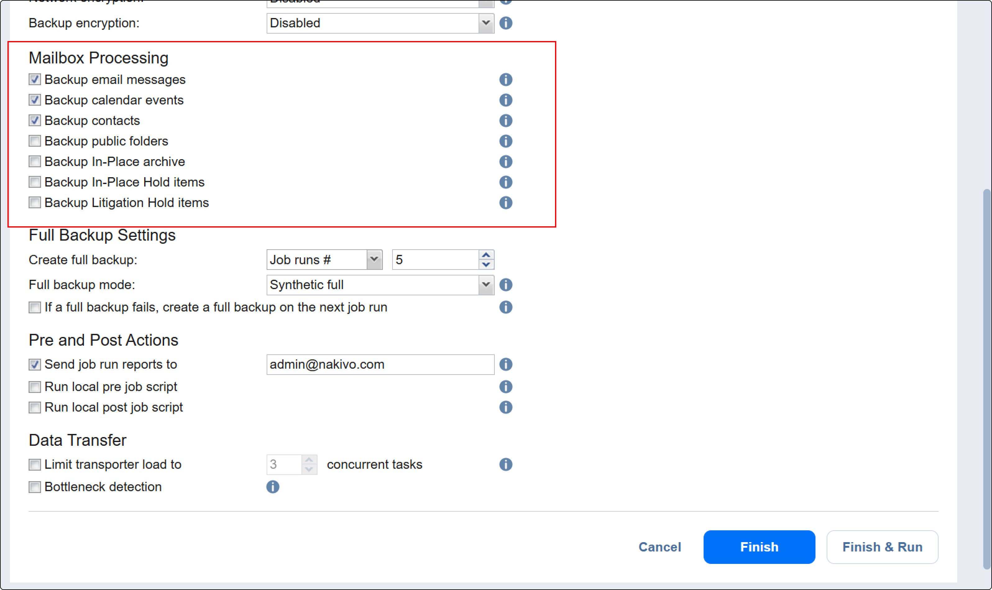 Click Finish or Finish & Run to complete the job creation.