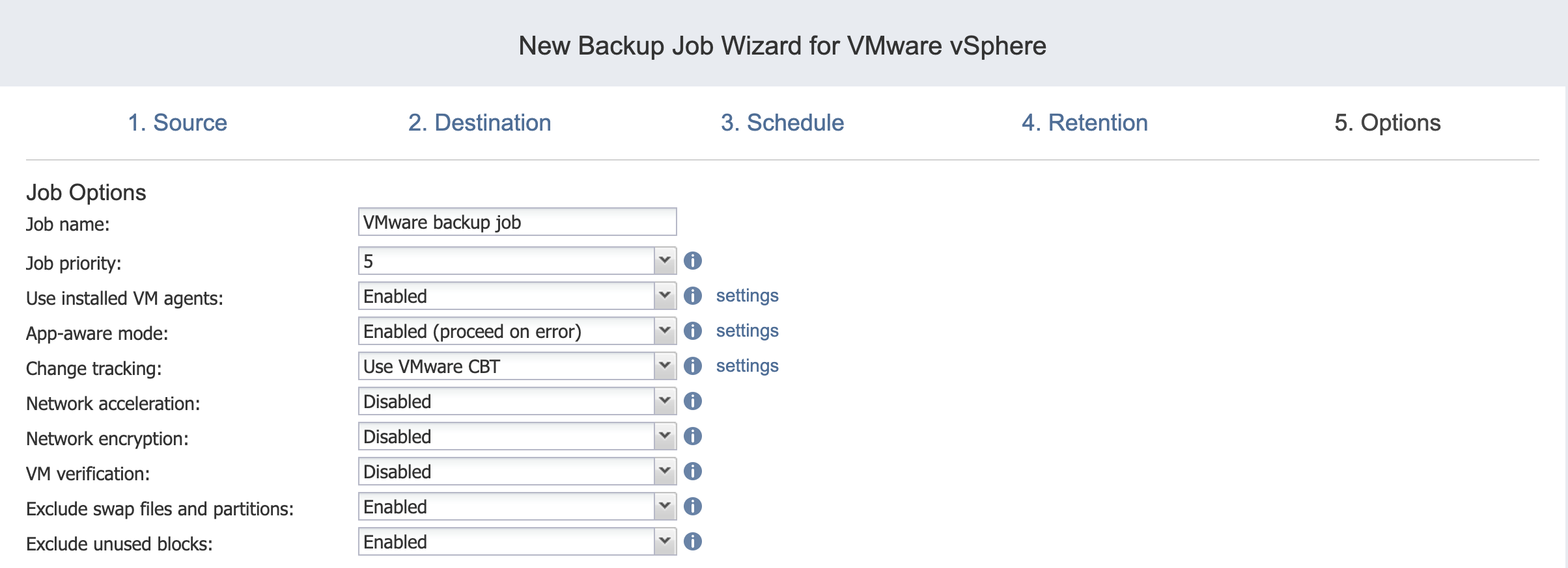 Backup Job Wizard for VMware: Options