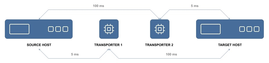 By default, the product automatically determines which Transporter should be used based on the proximity of a Transporter to the source or target server. The proximity is measured by using the ping round trip time.