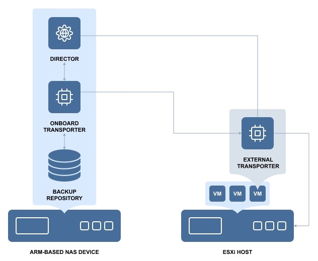 Since VMware does not provide a VDDK library for ARM-based processors, the NAKIVO Onboard Transporter may not support VMware as some functionality necessary for working with VMware is missing for such ARM-based NAS devices.