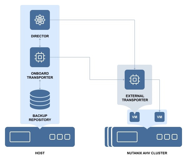 Nutanix AHV support is done via deploying a Nutanix Transporter to a Nutanix cluster to read/write data from/to VMs in Nutanix cluster. For more information, refer to Adding Installed Transporters and Deploying Transporter as Nutanix AHV Appliance sections.