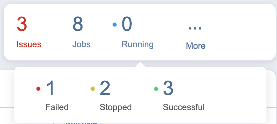 Issues: Total number of issues/alarms for the group of jobs. When clicked, this displays the Alarms & Notifications dialog box.