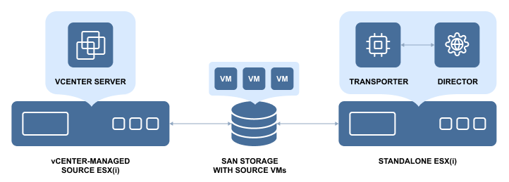 If your VMs are located on a Fiber Channel or iSCSI Storage Area Network (SAN) device, NAKIVO Backup & Replication can use direct SAN access for data retrieval. Using this storage access mode can significantly increase the speed of backup and replication while decreasing the load on your production network.