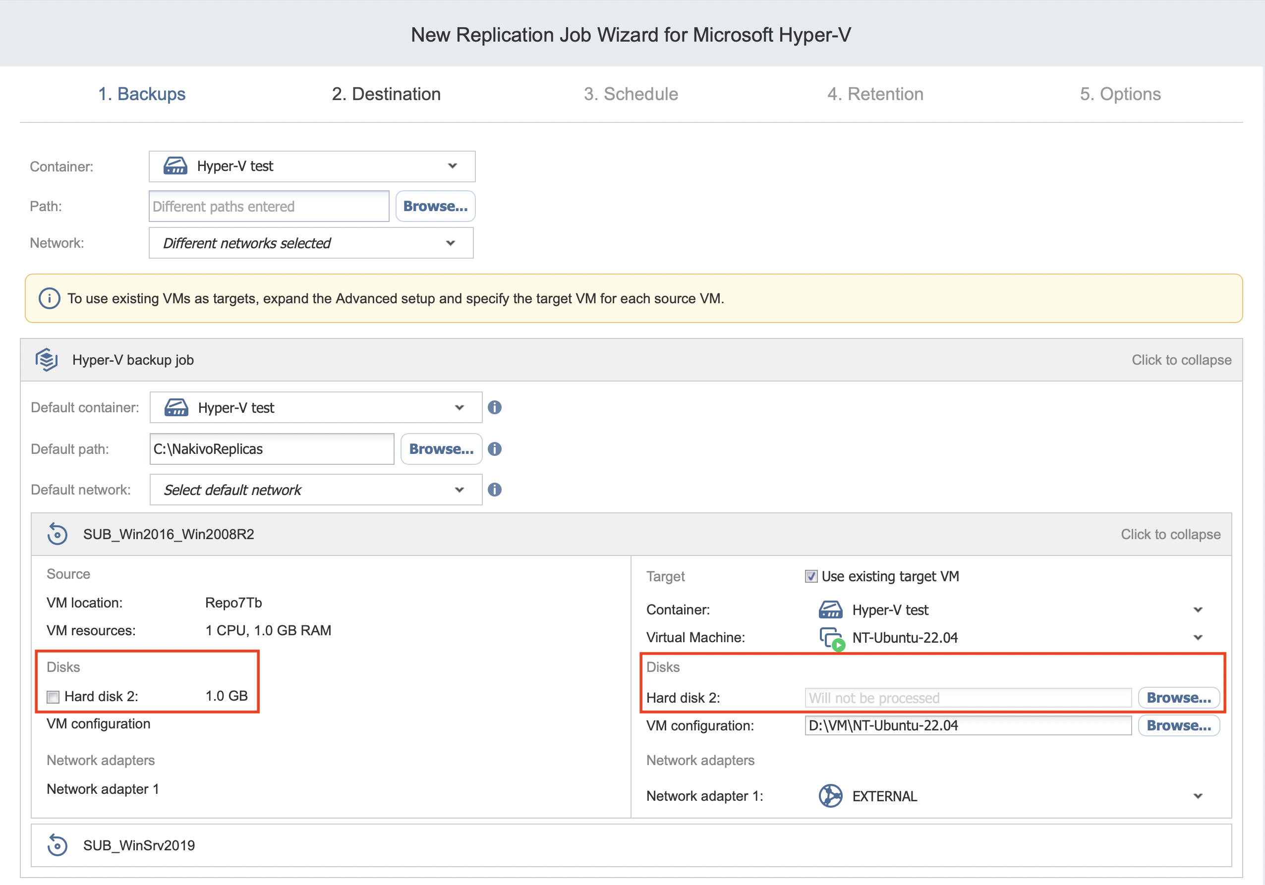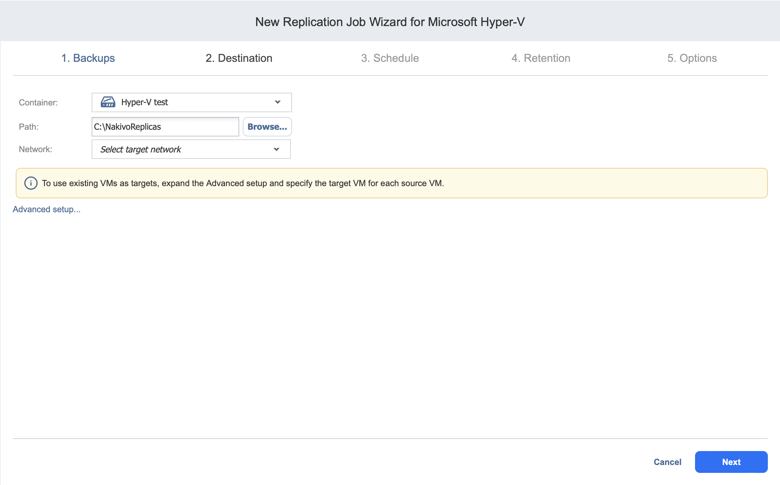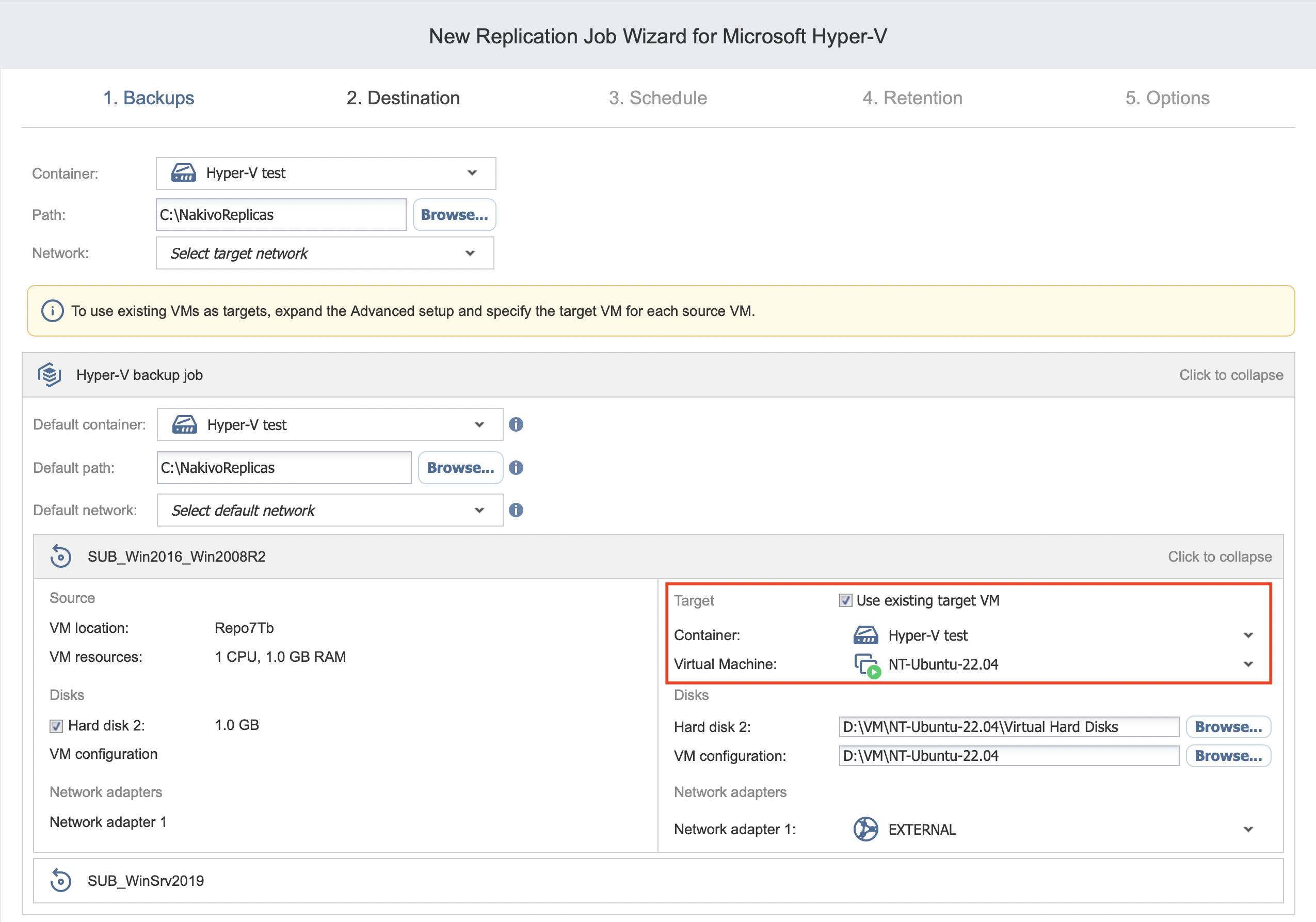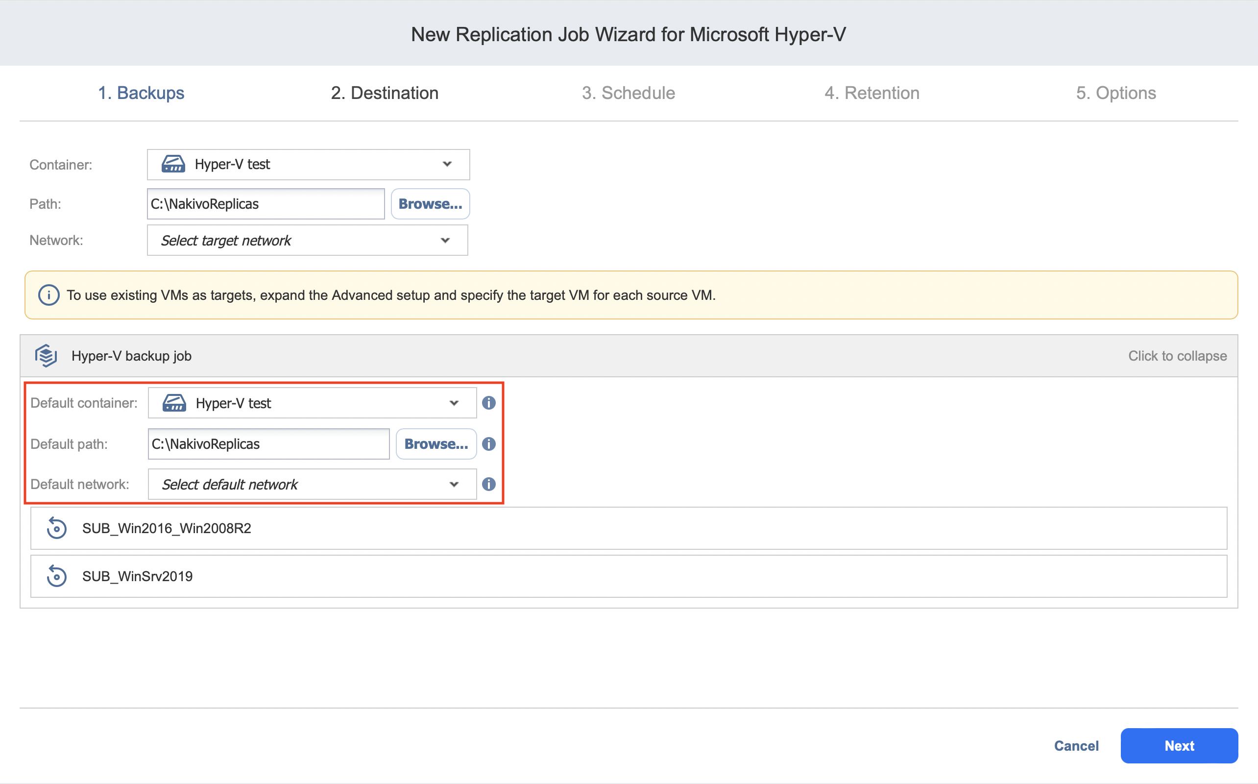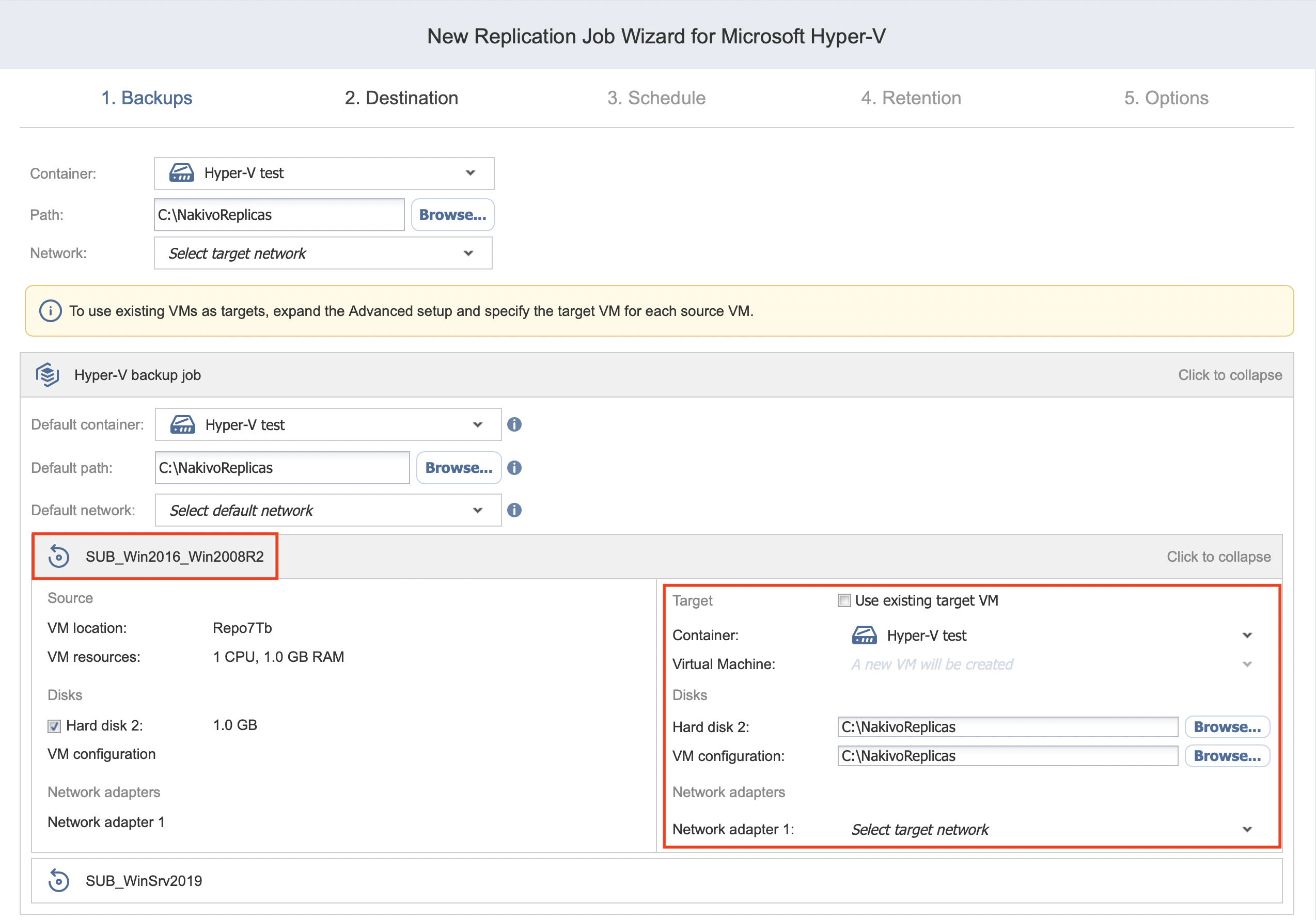 Replication Job Wizard for Hyper-V: Destination