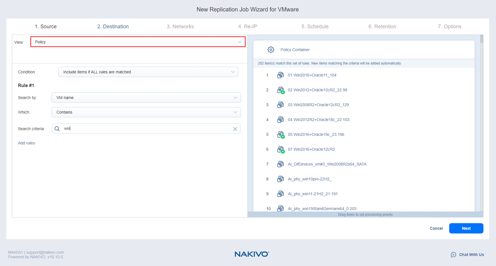 By adding a VMware container to the job, you ensure that important VMs are always protected. If you add a VMware container to the job: