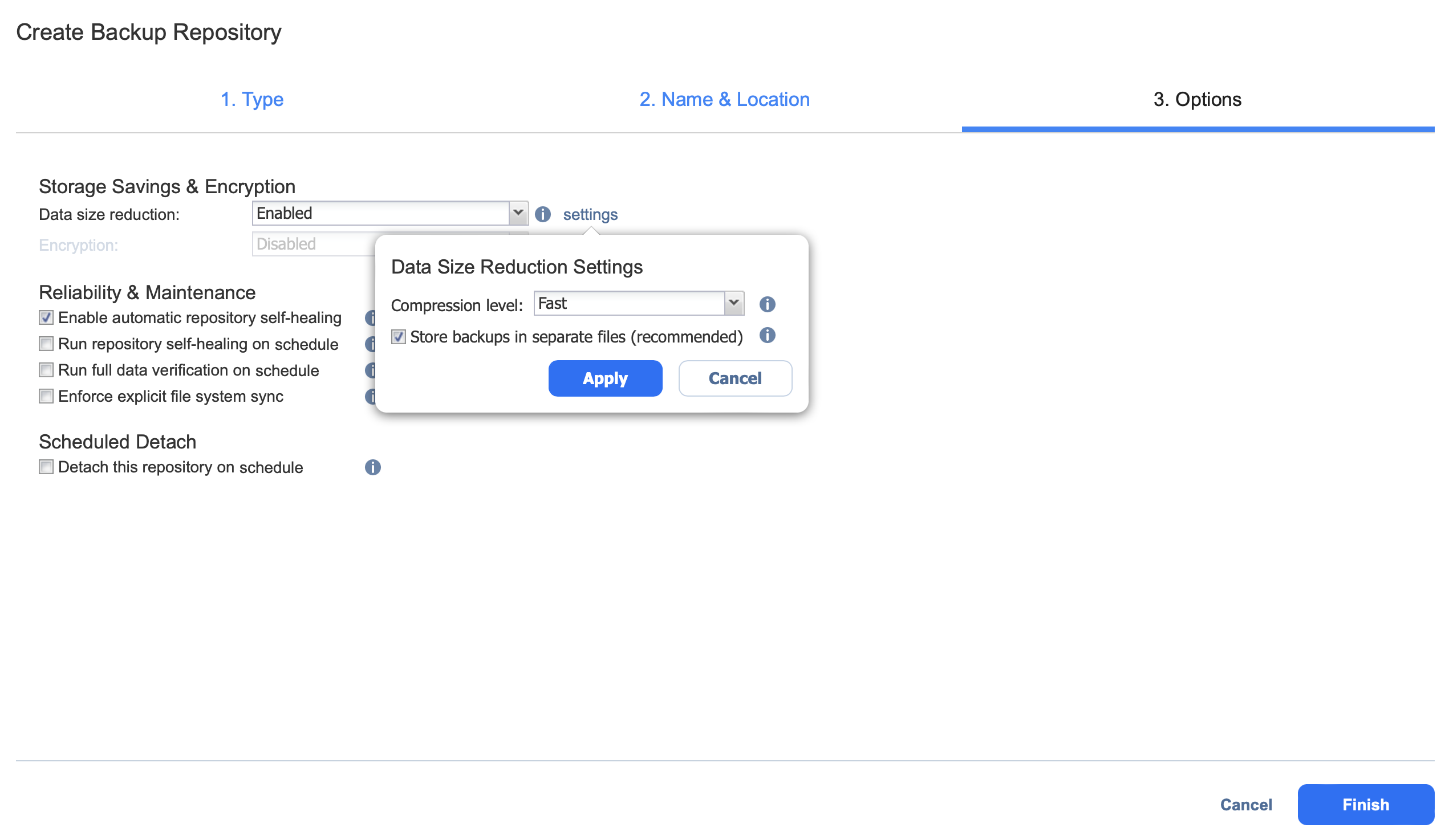 Create Backup Repository: Options