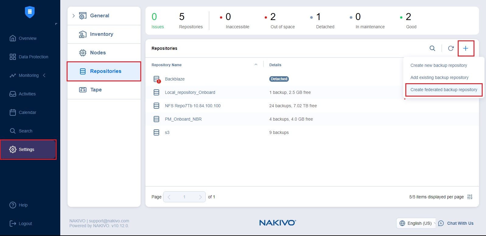 NAKIVO Backup & Replication allows you to create federated repositories for storing backups.