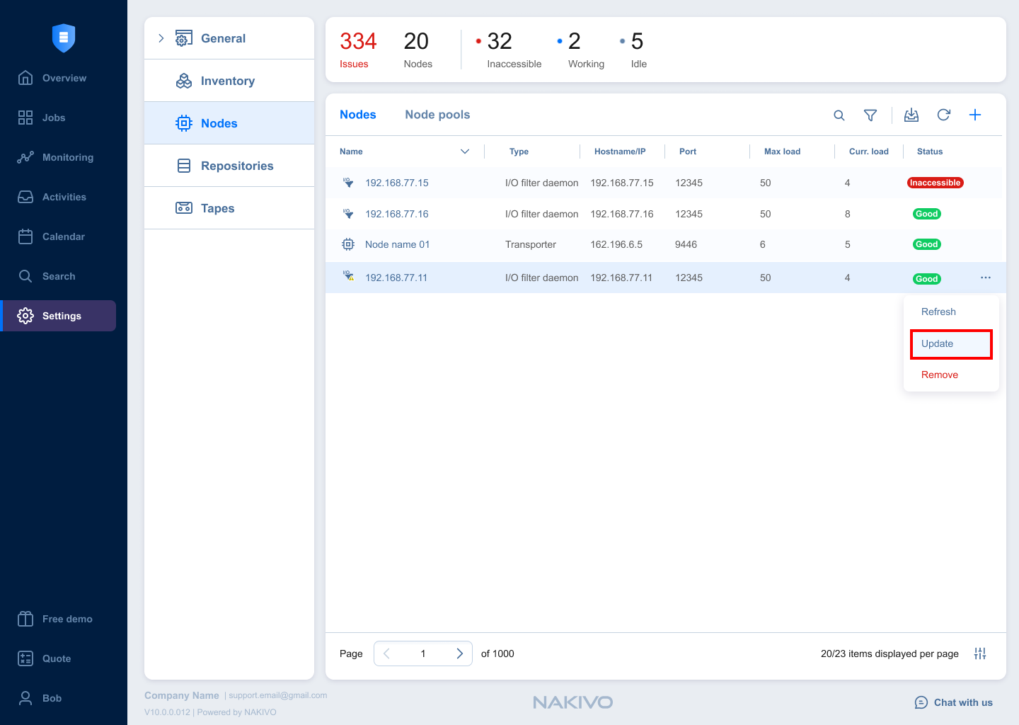 Navigate to the main UI and select the Settings > Nodes tab.