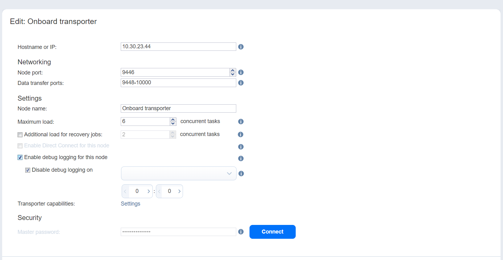 Nombre de host o IP: aquí puede editar la dirección IP o el nombre de host de la máquina en la que está instalado el nodo. No aplicable a appliance de Nutanix AHV, appliance de VMware vSphere o instancias de Amazon EC2.