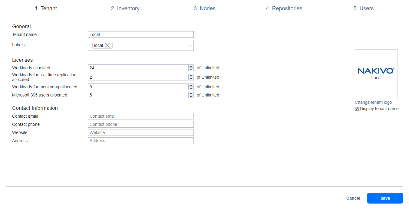 En la tabla Inquilinos, puede editar, desactivar, habilitar o eliminar inquilinos.
