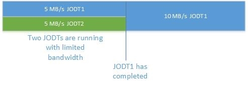 En caso de que dos JODT estén funcionando con un ancho de banda limitado y uno de ellos haya finalizado/fracasado/detenido, el ancho de banda asignado al JODT finalizado/fracasado/detenido se liberará, y el JODT restante obtendrá todo el ancho de banda permitido por la regla.