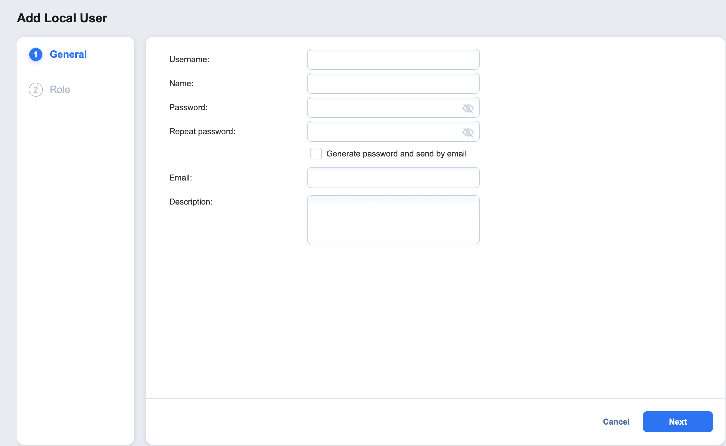 Se abre la página Añadir usuario local. Proceda como sigue: