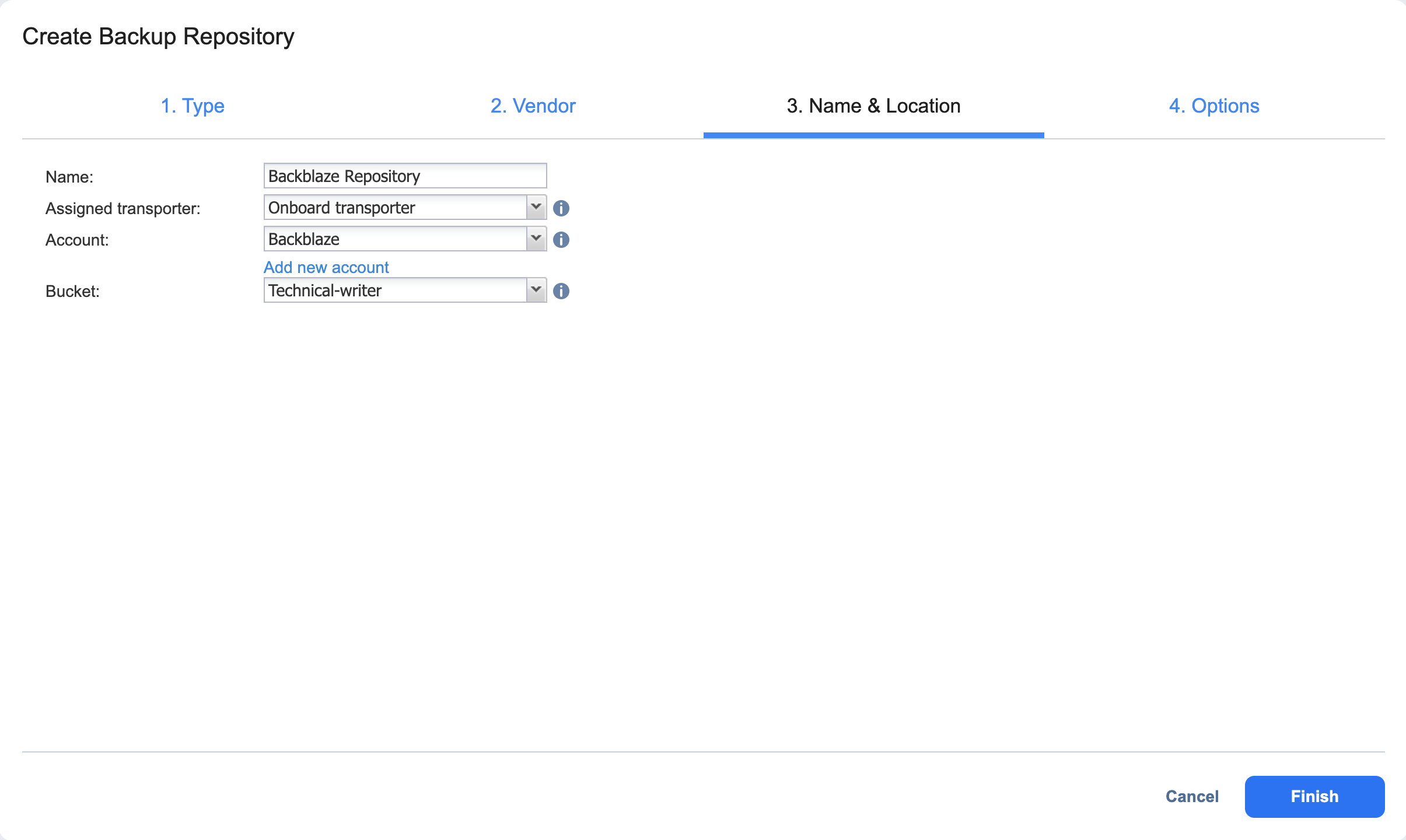 - Create Backup Repository: Vendor