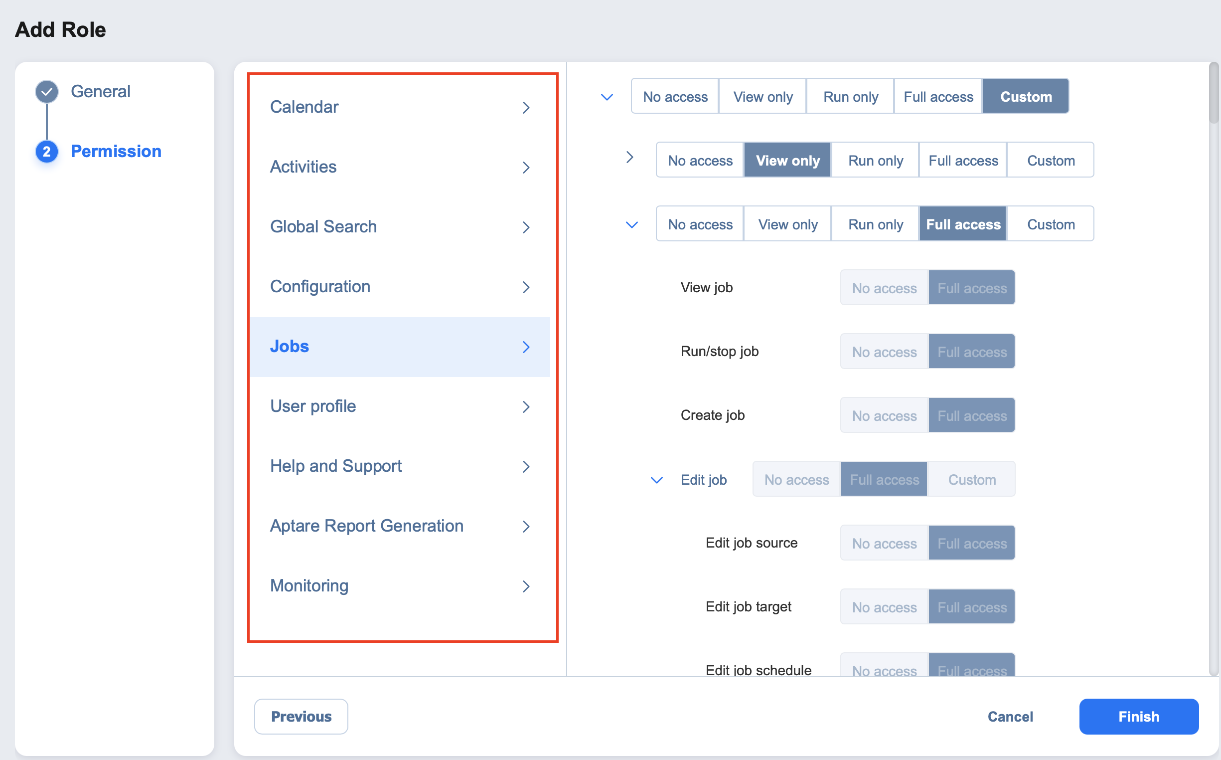 If you are working with a multi-tenant environment, you can change the access level for this role by choosing another tenant, master tenant, or all tenants in the Access level list.