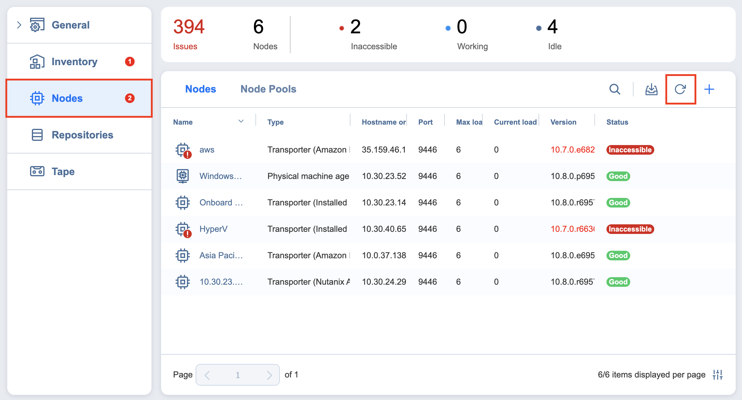 By default, NAKIVO Backup & Replication refreshes the information about Transporters every hour. During the refreshing process, the product collects all the required information about all transporters. Only one Transporter can be refreshed at a time. If you have more than one Transporter, all others will remain in the queue until they are able to be refreshed.