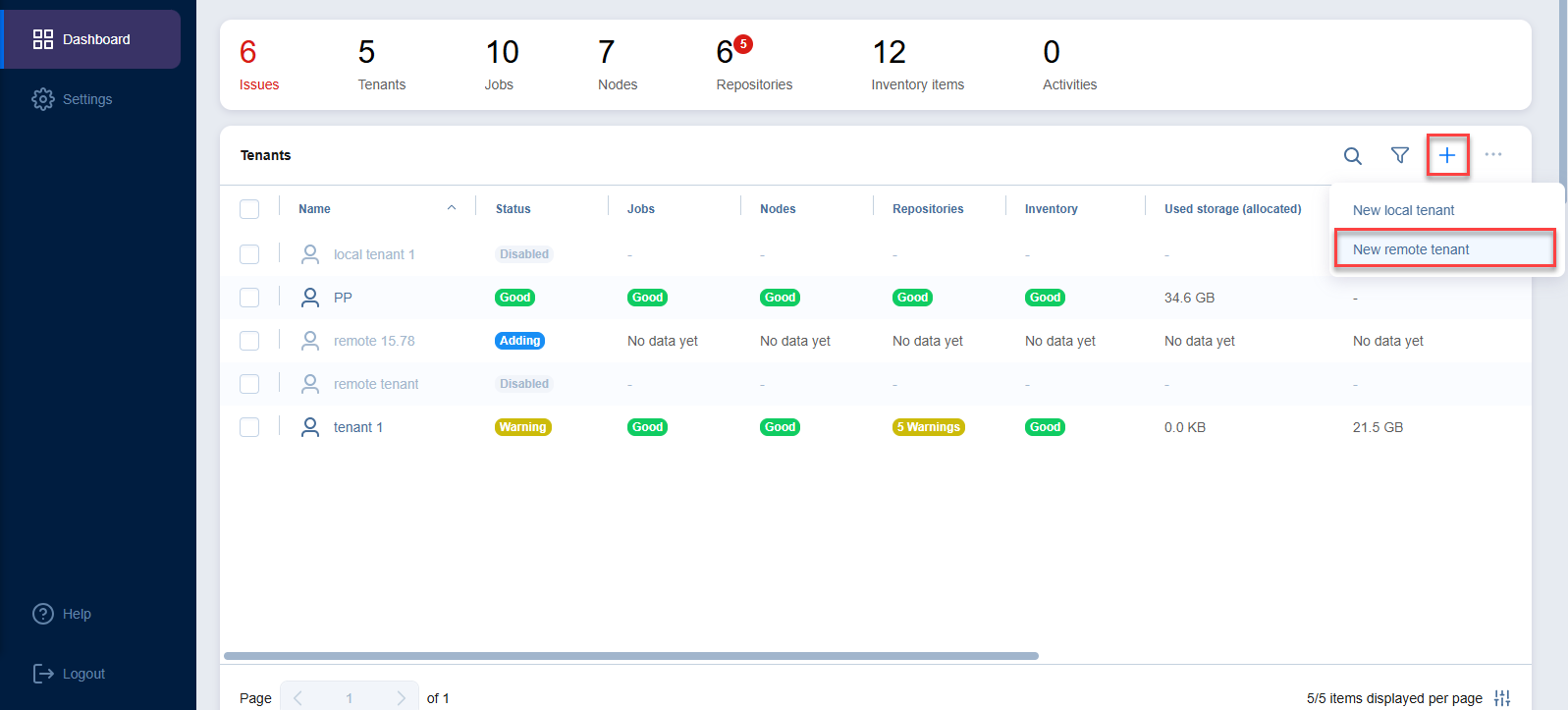 To create a new remote tenant, follow the steps below: