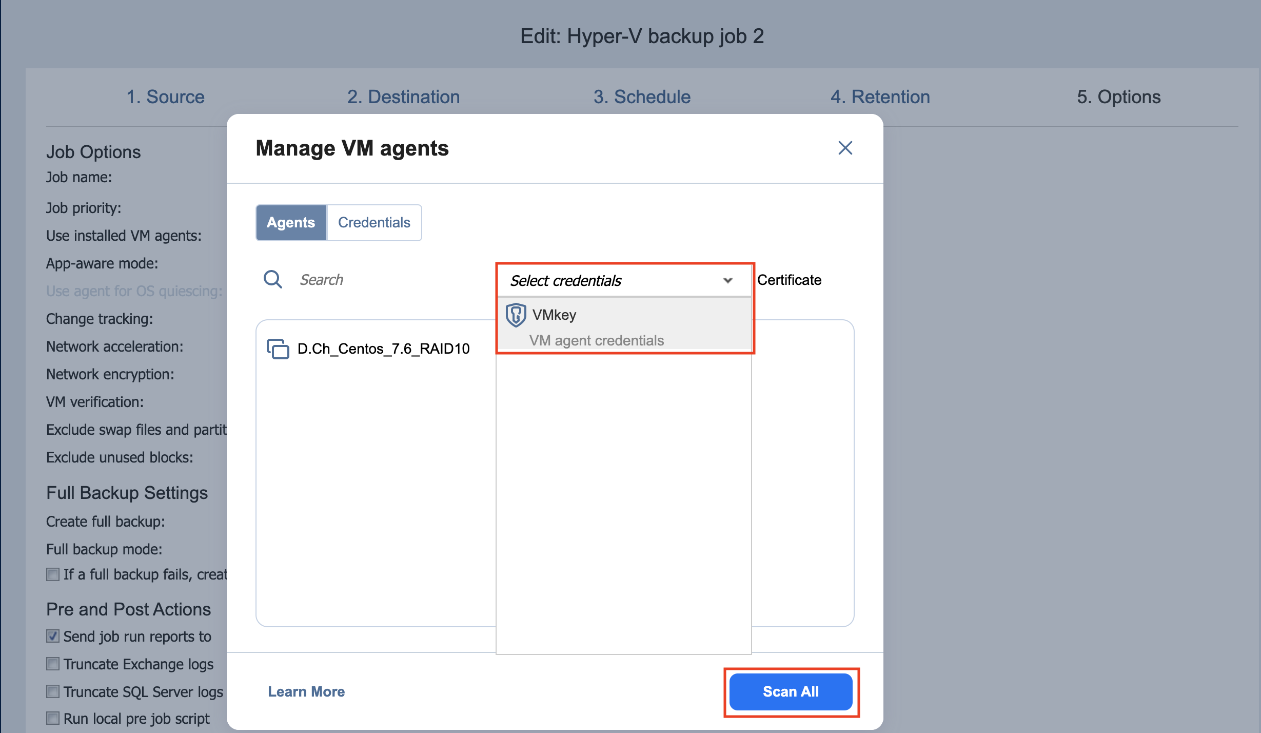 To enable your installed VM agents (VMAs) to be used in jobs, proceed as follows:
