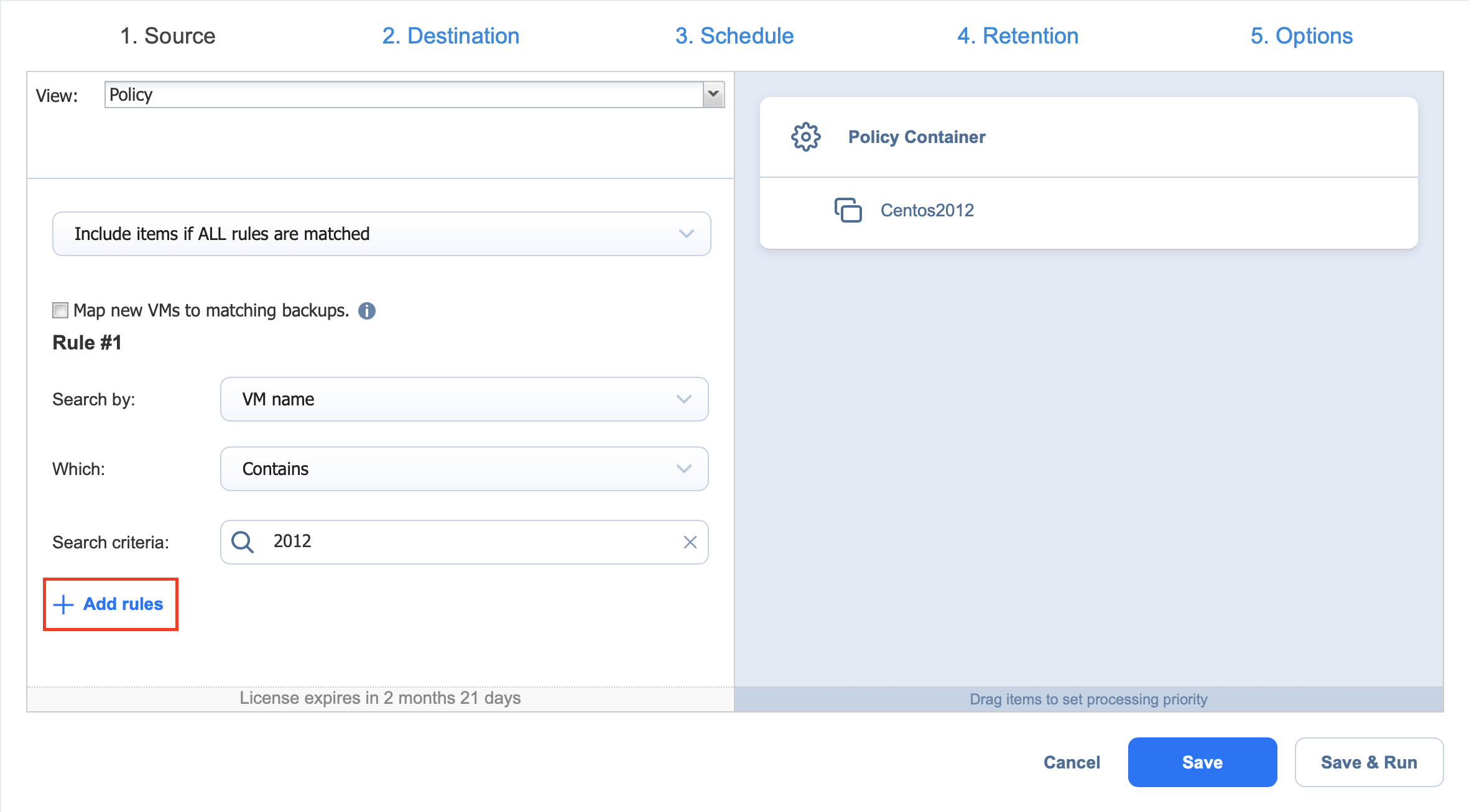 In the Policy view of the inventory tree, policy rules are numbered by NAKIVO Backup & Replication for your convenience.