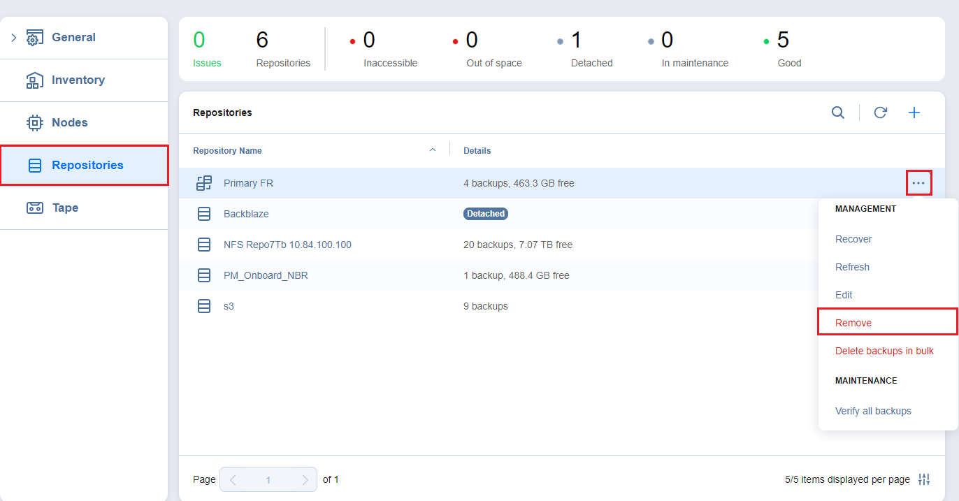 A federated repository cannot be removed while a backup job using this federated repository as a target is running or if it contains at least one backup object referenced by existing job(s). To remove such a federated repository, delete (or edit) the corresponding job so that no items are backed up to the aforementioned repository.